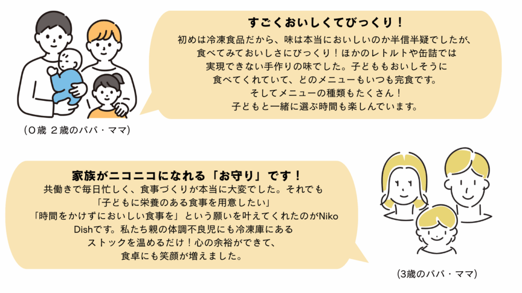 そんなお父さん、お母さんの思いを応援したく、子ども向け冷凍おかず「Niko Dish」は生まれました。